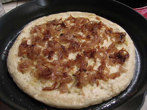 Layer on the onions and pop it in the oven for about 10 minutes.